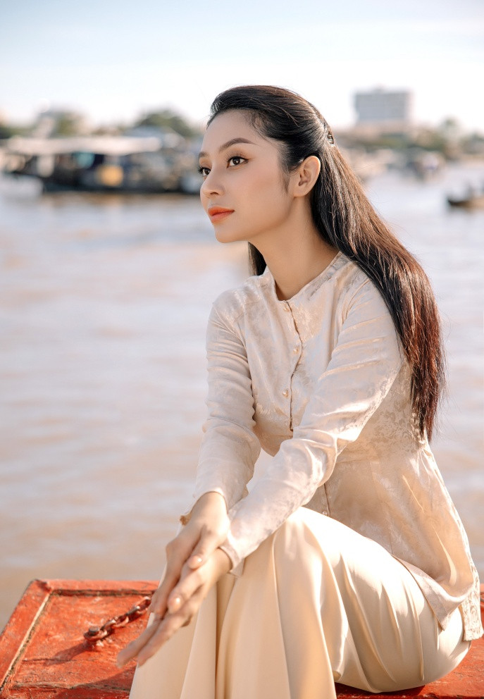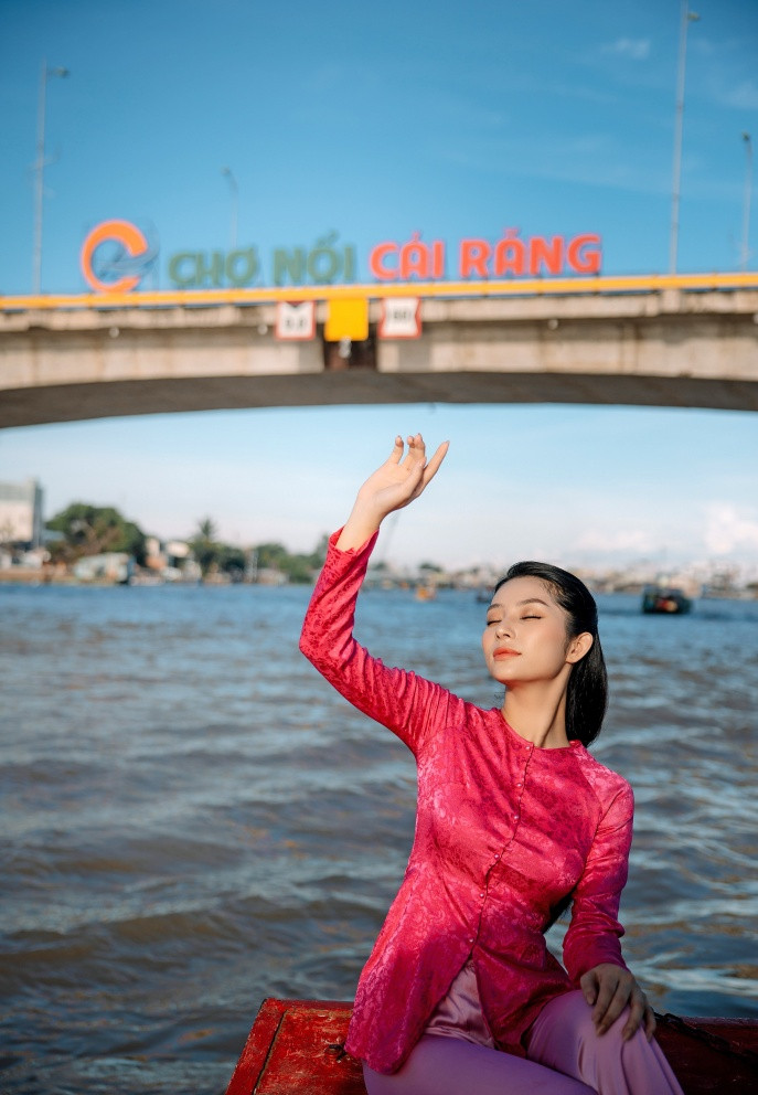 Lâm Thu Hồng hóa hình ảnh cô gái miền Tây đón bình minh nơi sông nước. Đây cũng là dịp để người đẹp giới thiệu vẻ đẹp độc đáo, ấn tượng của chợ nổi Cái Răng - một trong những vẻ đẹp tiêu biểu của miền Tây.