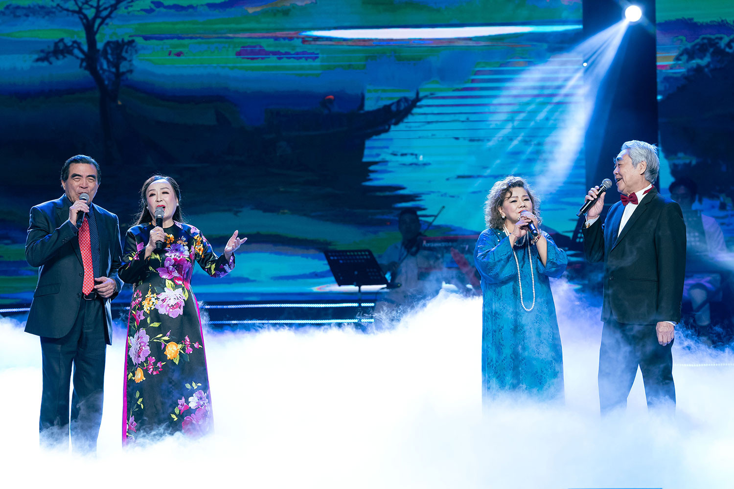 Tết Vạn Lộc 2025 lần đầu tiên có sự góp mặt của NSND Trung Đức, NSND Quang Thọ và màn song ca của NSND Thu Hiền - NSND Thanh Hoa. Đặc biệt, 4 nghệ sĩ gạo cội cùng hoà giọng ấn tượng với bài Quảng Bình quê ta ơi.
