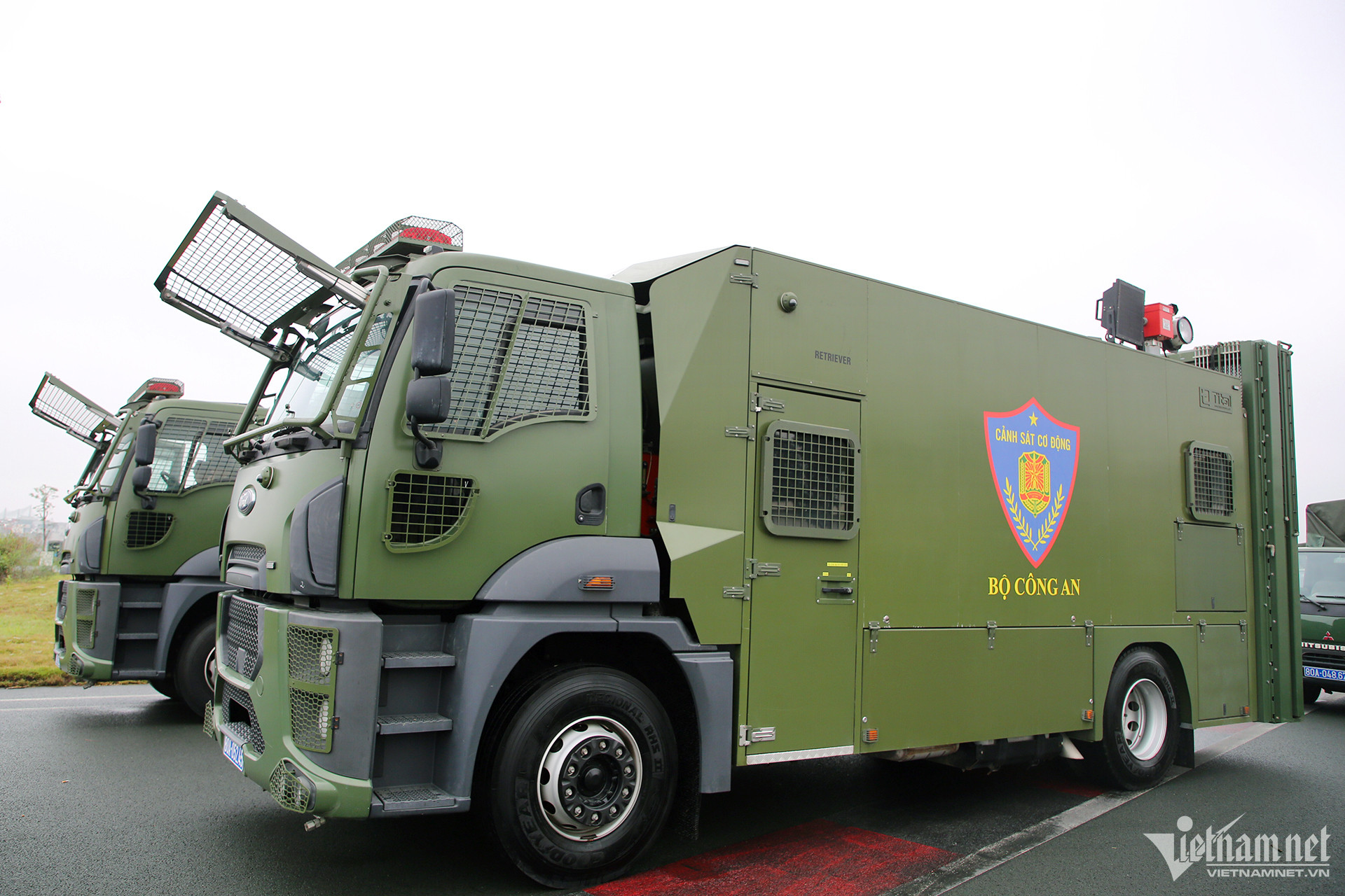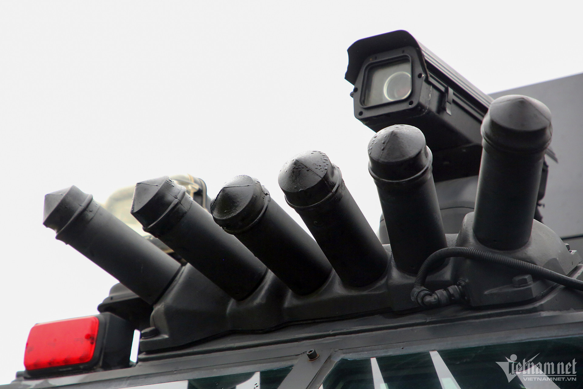 Bên cạnh đó, còn có xe phun nước chống bạo loạn, được trang bị hệ thống điều khiển tự động hiện đại gồm các vòi phun nước áp lực lớn để giải tán đám đông. Xe được tích hợp hệ thống trộn chất cay, phun sơn đánh dấu đối tượng, có hệ thống camera bố trí phía trước, sau và trên nóc xe, giúp cán bộ chiến sĩ dễ dàng quan sát.