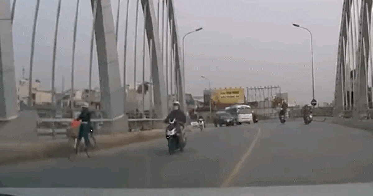 Tài xế phóng xe bạt mạng, lấn làn vượt xe khác trên cầu