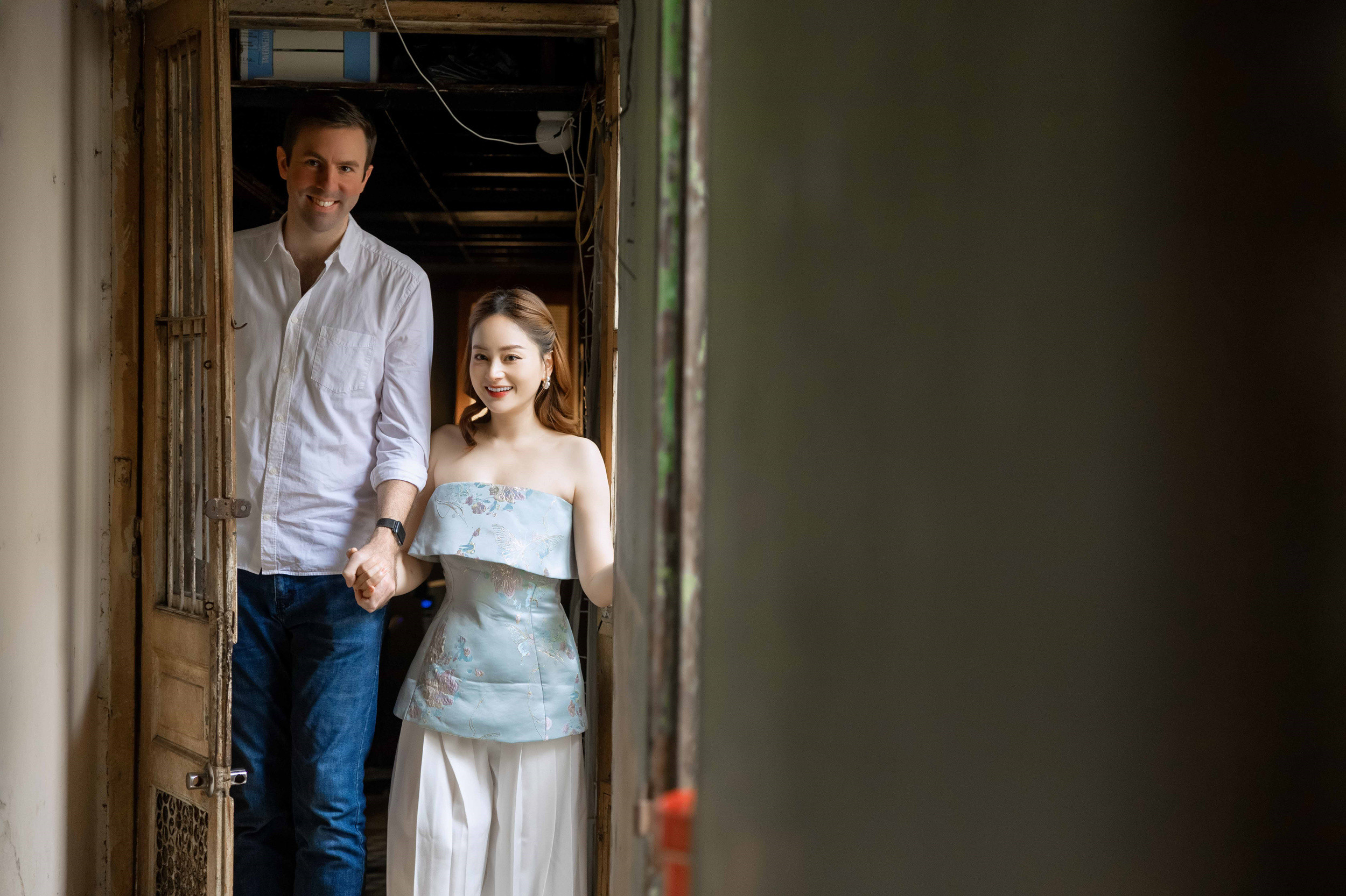 Diễn viên Lan Phương và ông xã David Duffy ghi lại những khoảnh khắc tình tứ, hạnh phúc khi cùng dạo phố phường Hà Nội.