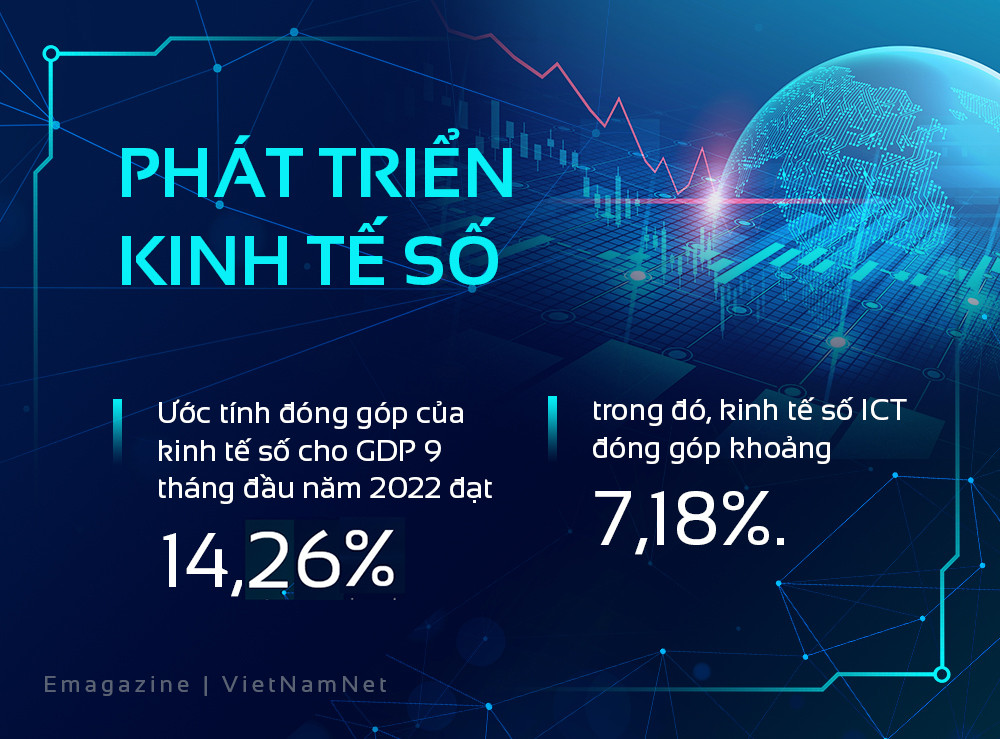 Ước tính đóng góp của kinh tế số cho GDP 9 tháng đầu năm 2022 đạt 14,26%, trong đó, kinh tế số ICT đóng góp khoảng 7,18%.