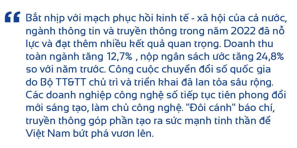 Năm 2022, Bộ TT&TT đã thành lập “Trung tâm Hỗ trợ chuyển đổi số báo chí”, xây dựng Đề án hỗ trợ một số cơ quan báo chí ảnh hưởng lớn nhằm hỗ trợ giải quyết khó khăn trong hoạt động cơ quan báo chí, đồng thời, thể hiện vai trò dẫn dắt của cơ quan quản lý nhà nước, song hành cùng báo chí để hỗ trợ, tạo điều kiện cho báo chí phát triển đúng hướng, phát huy vai trò sứ mệnh của mình.