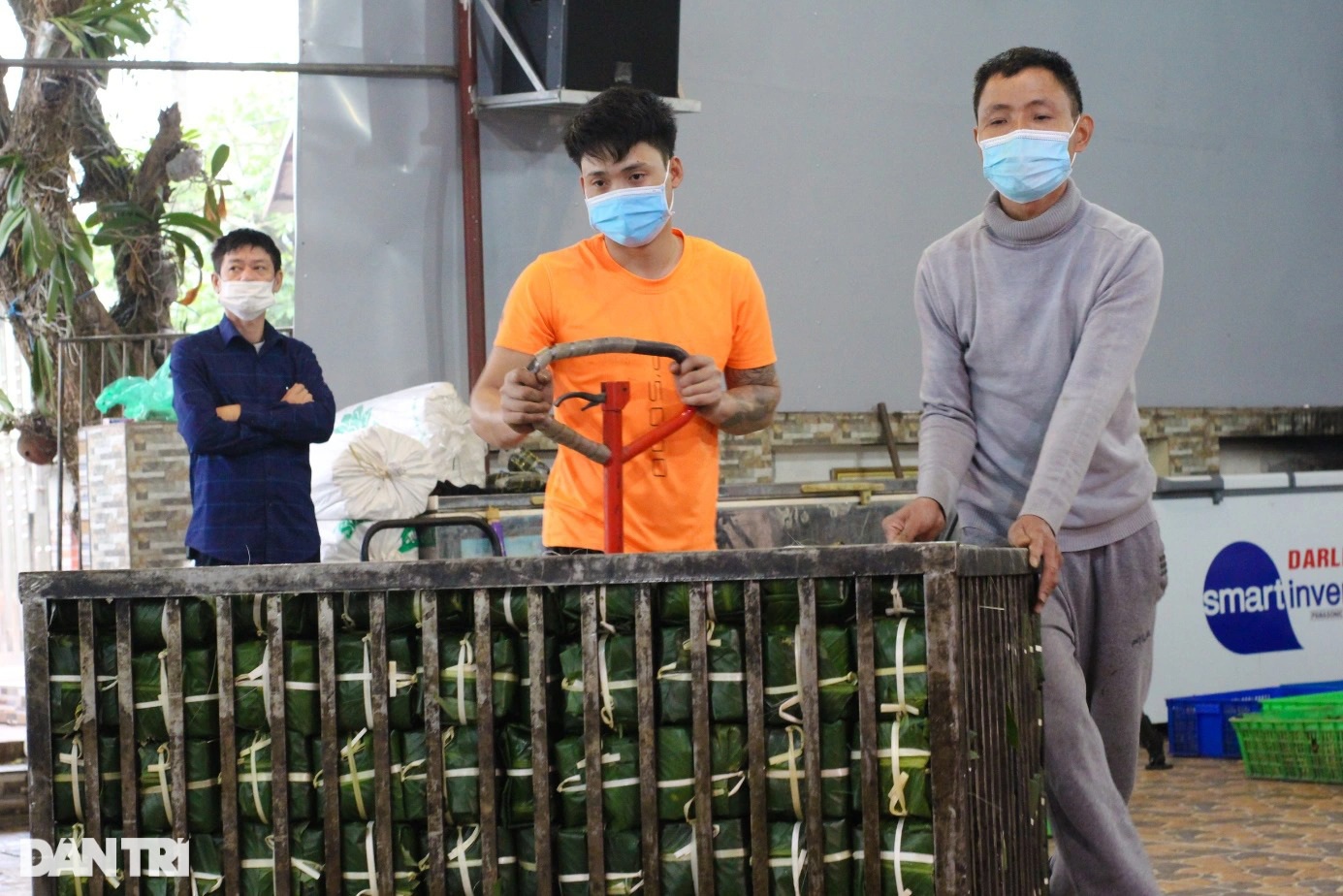 Không chỉ người làng hối hả, những chuyến xe chở theo nguyên liệu để gói bánh và chở bánh từ làng đi phân phối cũng vào ra tấp nập.