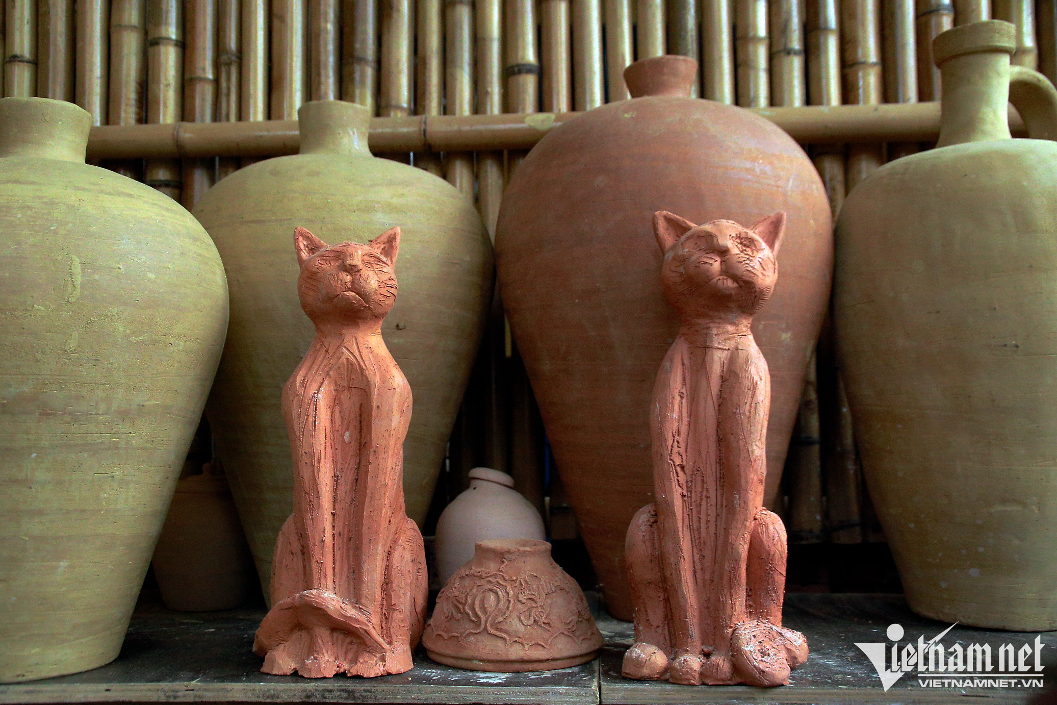 “Làng có 32 cơ sở, chia thành 3 dòng gốm gồm: sản phẩm lưu niệm, sản phẩm thủ công mỹ nghệ và sản phẩm truyền thống. Bên cạnh làm 12 con giáp, những chú mèo sẽ được tăng số lượng để phục vụ dịp Tết”, ông Hào nói.
