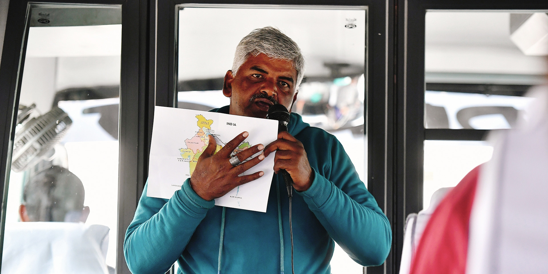 Đón đoàn trải nghiệm của chúng tôi là ông Bhawar Singh Rathore, một hướng dẫn viên đã luống tuổi. Điểm đặc biệt đầu tiên mà tour guide giới thiệu về đất nước đông dân thứ 2 thế giới là du khách không thể tìm được thịt bò tại bất kỳ đâu trên lãnh thổ của họ, trừ sữa bò và bơ làm từ bò.