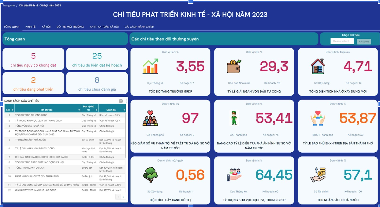 Hệ thống có 3 chức năng chính gồm: Tổng hợp thông tin kinh tế - xã hội, kết quả bộ chỉ tiêu điều hành; điều hành, quản trị; giám sát, tương tác giữa người dân với chính quyền.