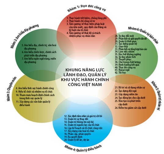 Các nhóm Đạo đức công vụ, Am hiểu địa phương và Chuyên môn được xây dựng phù hợp với quy định và thực tiễn Việt Nam, trong khi đó các nhóm Quản lý điều hành, Quản trị nhân sự và Quản trị bản thân được xây dựng dựa trên nghiên cứu sâu và rộng tại nhiều địa phương trên toàn quốc. Một số năng lực thuộc nhóm Quản trị nhân sự và Quản trị bản thân được đánh giá là rất thiếu và yếu đối với cán bộ lãnh đạo, quản lý câp sở và huyện trong giai đoạn hiện nay.