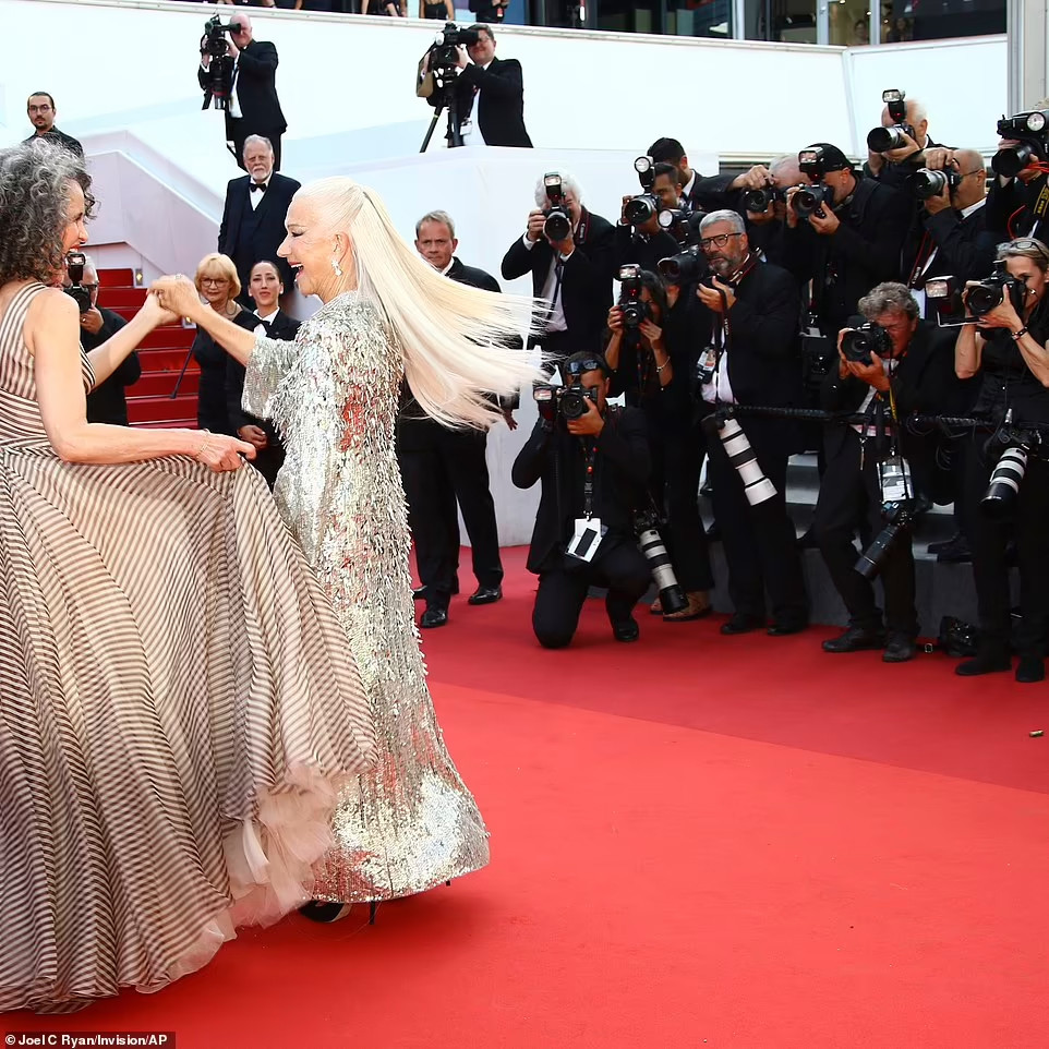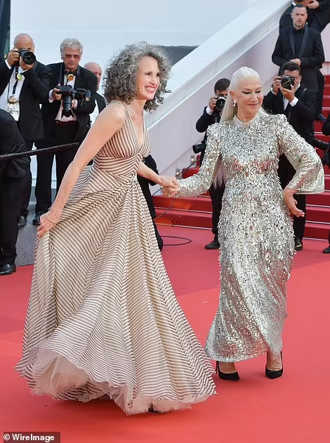 Helen Mirren và nữ diễn viên 64 tuổi Andie MacDowell xuất hiện cùng lúc trên thảm đỏ và khi tiếng nhạc nổi lên, họ bất ngờ khiêu vũ và nhanh chóng thu hút mọi ống kính.