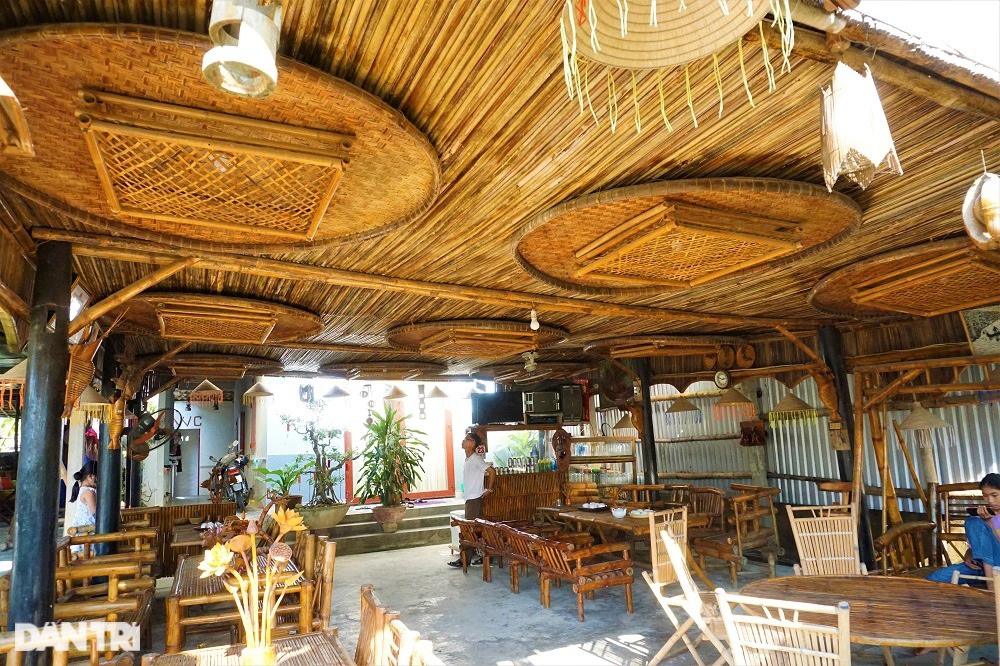 Toàn bộ điểm dừng chân phục vụ khách nghỉ ngơi đều được trang trí nội thất từ tre do ông Hùng tự chế tác.