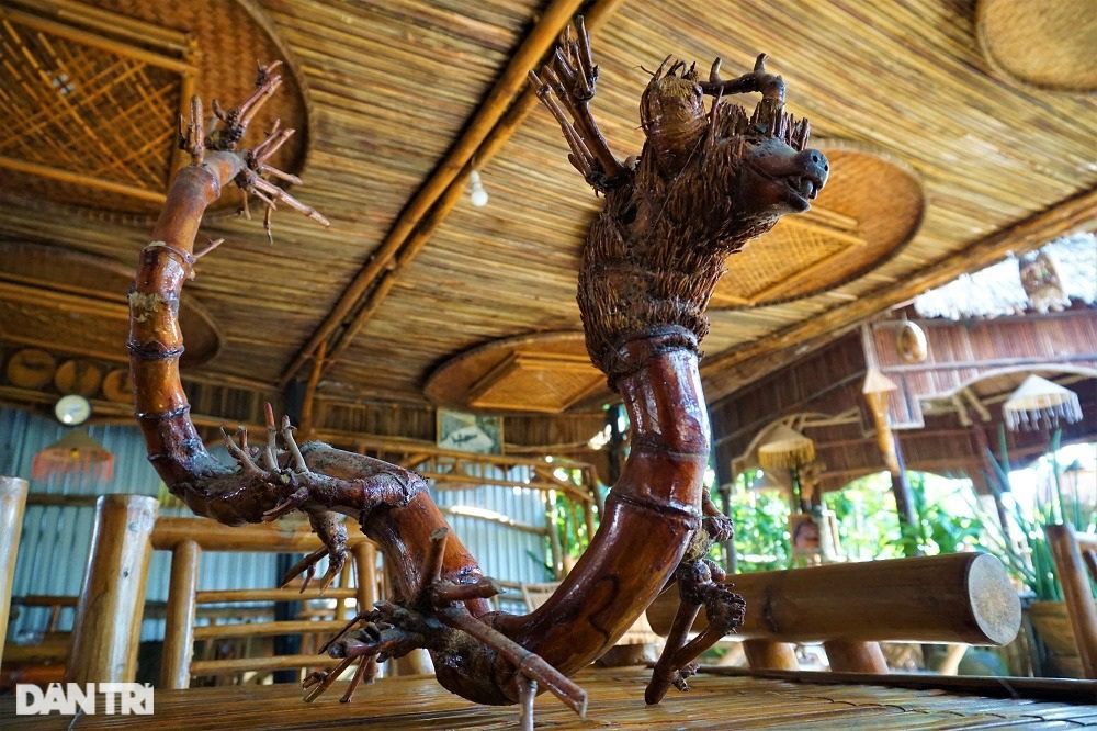 Đặc biệt ông còn tạo hình những con rồng từ gốc tre trông rất bắt mắt.