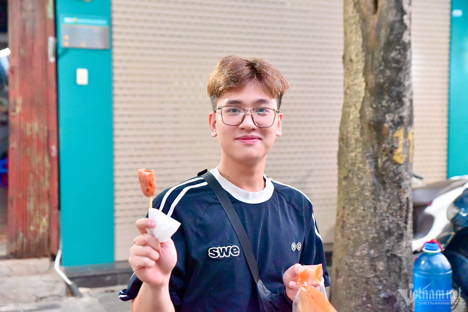 Dương Duy Phương (Hải Dương) xếp hàng khoảng 30 phút để đến lượt mua lạp xưởng. "Hôm nay mình đã đến đây ăn 2 lần rồi, mặc dù khá đông khách nhưng mình vẫn đứng xếp hàng để có thể thưởng thức thêm. Loại lạp xưởng này phần thịt và mỡ đan xen ăn không bị khô như xúc xích nướng bình thường và không quá ngọt như lạp xưởng khác, rất hợp khẩu vị của mình”, Phương chia sẻ.