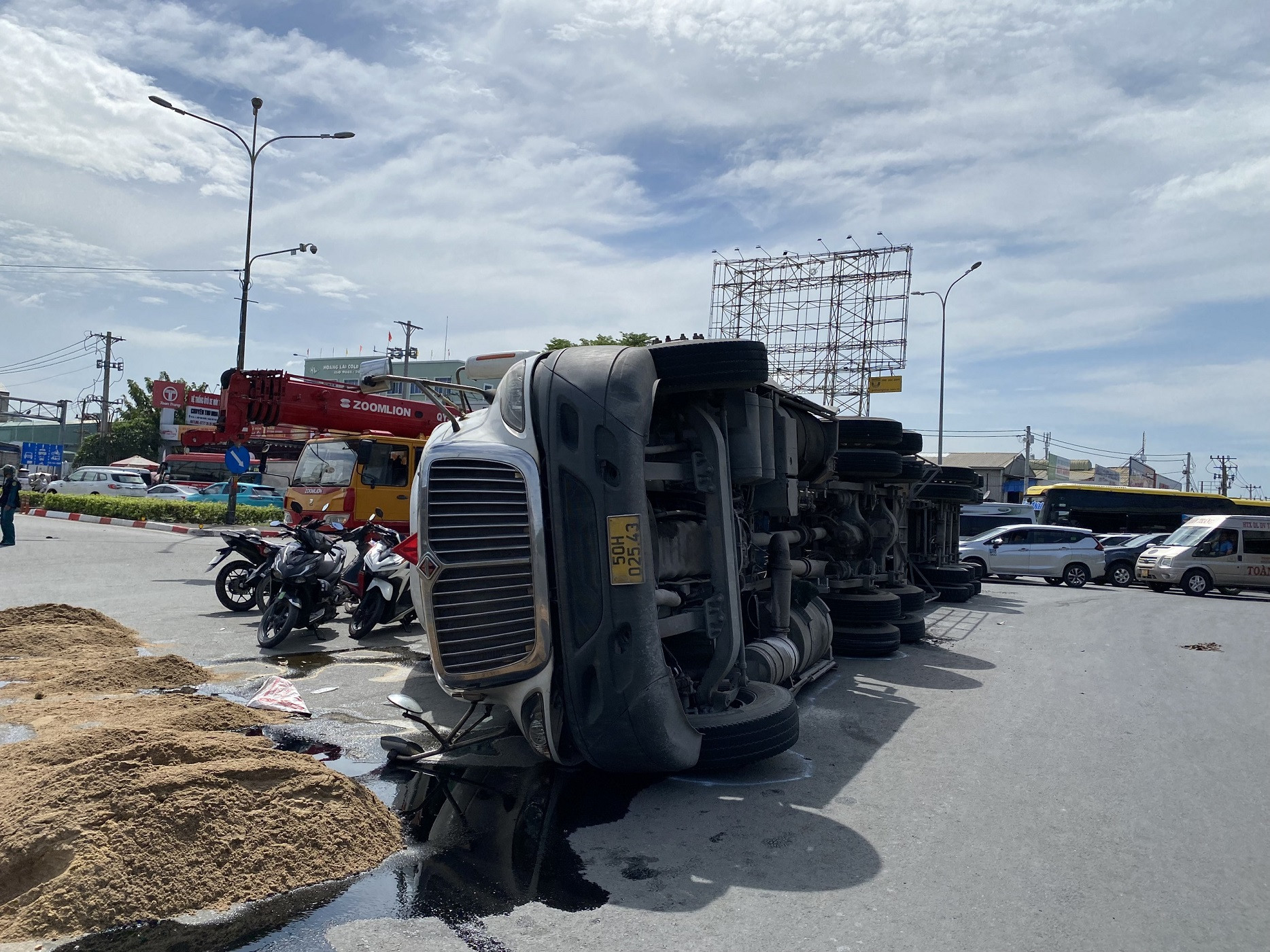 Trước đó, khoảng 11h cùng ngày, xe container BKS: 50H-025.43 kéo theo rơ moóc lưu thông trên Quốc lộ 13, hướng Bình Dương đi TP.HCM. Khi xe ôm cua về hướng Quốc lộ 1 thì bất ngờ lật ngang, phát ra tiếng động lớn giữa giao lộ đông đúc khiến nhiều người hoảng sợ. .