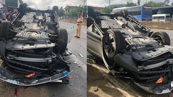 Xe đầu kéo và ô tô khi lưu thông trên QL6 (Sơn La) trong lúc tránh nhau, không làm chủ được tay lái nên xe đầu kéo bị lật ngang.