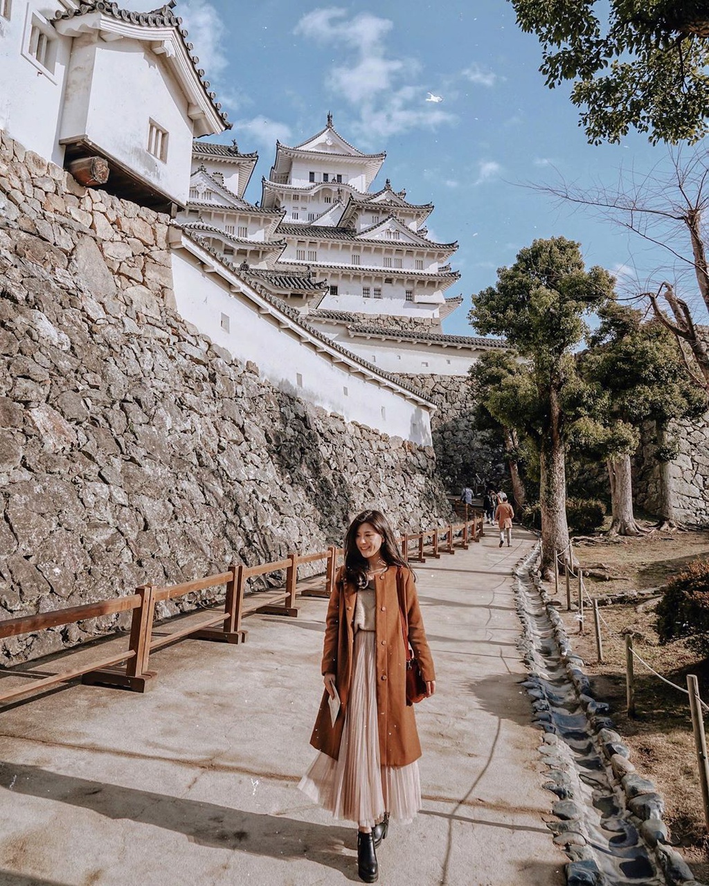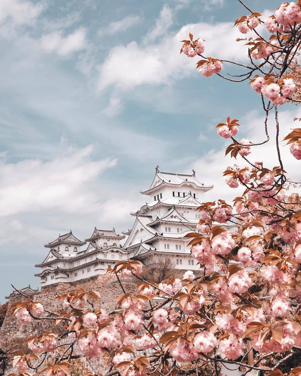 Để chiêm ngưỡng hoa anh đào, du khách có thể ghé khu vực phía nam của lâu đài. Với khoảng đất rộng, đây cũng là địa điểm check-in được nhiều tín đồ sống ảo yêu thích bởi có thể lấy chọn background lâu đài Hạc Trắng. Ảnh:traveling.steph,eberin.kou. |