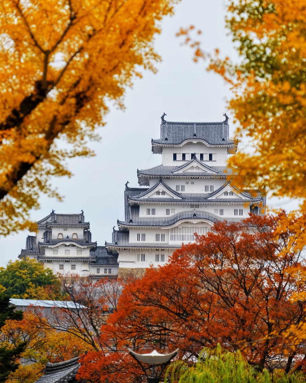 Ngày nay, Himeji mở cửa cho du khách tham quan. Mùa thu và mùa xuân là thời điểm đẹp nhất để chiêm ngưỡng vẻ đẹp của lâu đài 600 tuổi này. Từ tháng 9-11, lâu đài được phủ vàng, đỏ bởi sắc màu của cây dẻ quạt, cây phong bên ngoài. Xuân đến, lâu đài hóa quang cảnh cổ tích bởi những hàng hoa anh đào nở rộ khoe sắc. Ảnh:sueyentsai. |