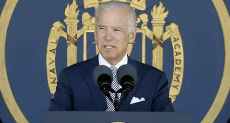 Phát biểu ở Học viện Hải quân Mỹ, ông Biden mô tả những căng thẳng xung quanh hoạt động của TQ ở Biển Đông đang là một thách thức với thế giới.