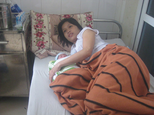 Chị Vanh cười mãn nguyện bên con gái mang tên cơn bão lịch sử Haiyan. |