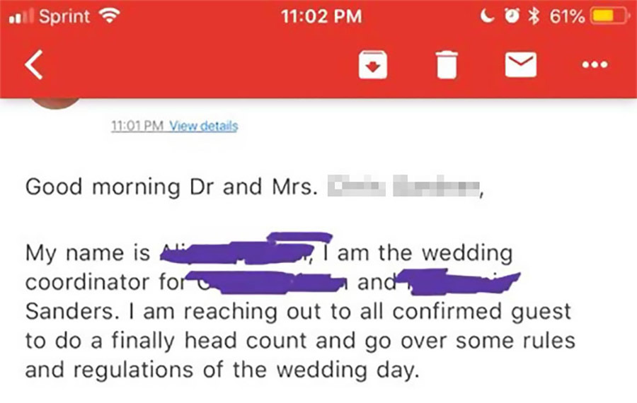 Những “yêu sách” trong đám cưới của một cặp đôi người Mỹ đã khiến các khách mời tỏ ra khó chịu.