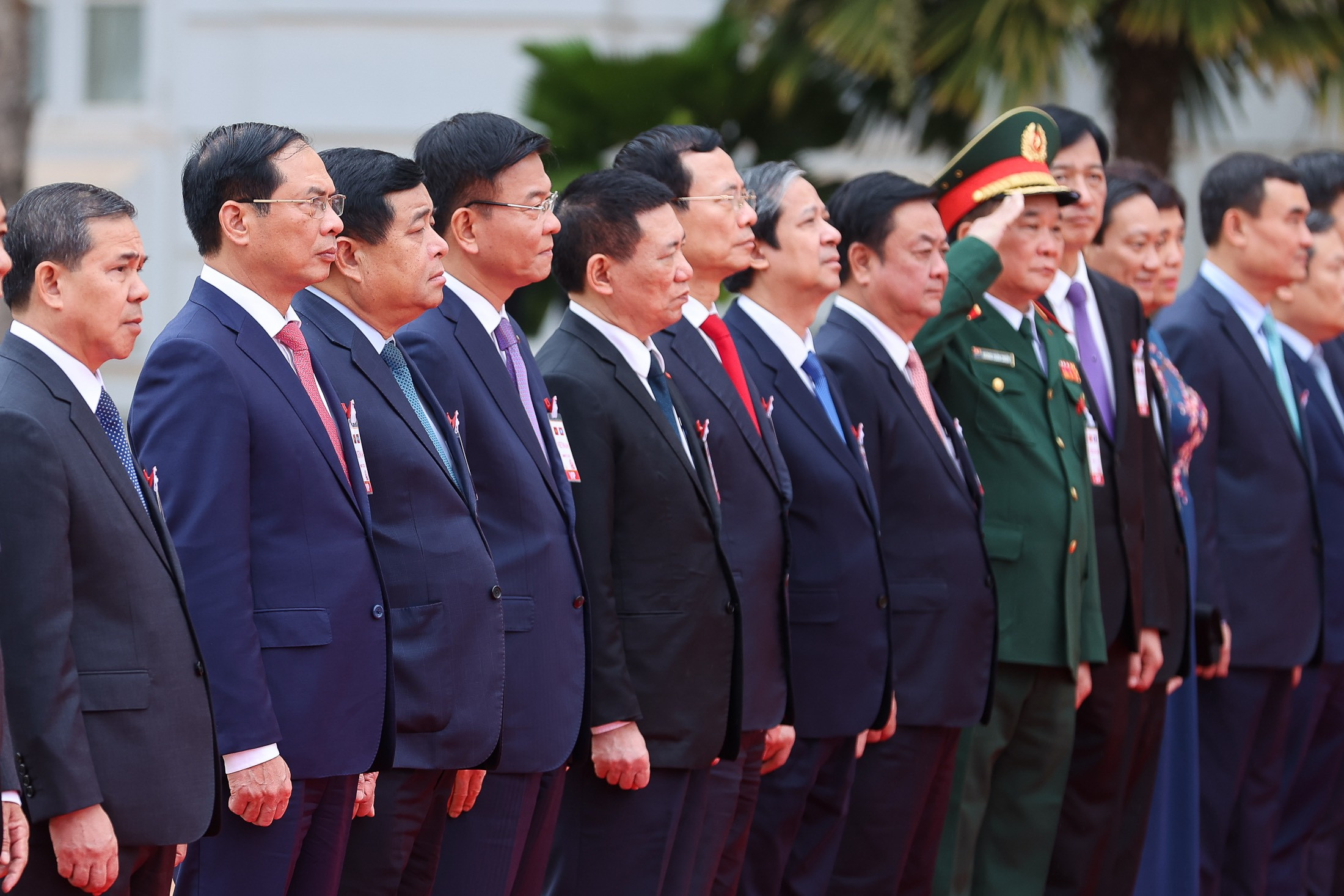 Hai Thủ tướng bước trên thảm đỏ, tiến về phía bục danh dự. Quốc thiều Việt Nam và Quốc thiều Lào vang lên. Hai nhà lãnh đạo thực hiện nghi lễ duyệt đội danh dự.