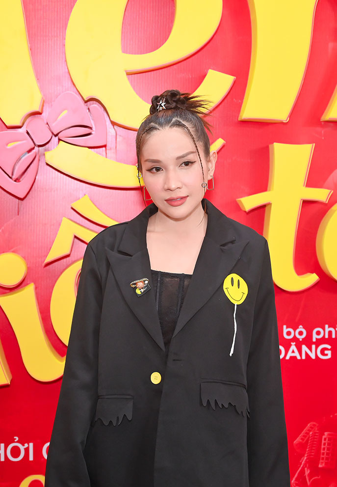 | Diễn viên Tuyền Mập cùng bé Ngân Chi diện áo bà ba đến dự ra mắt phim. |