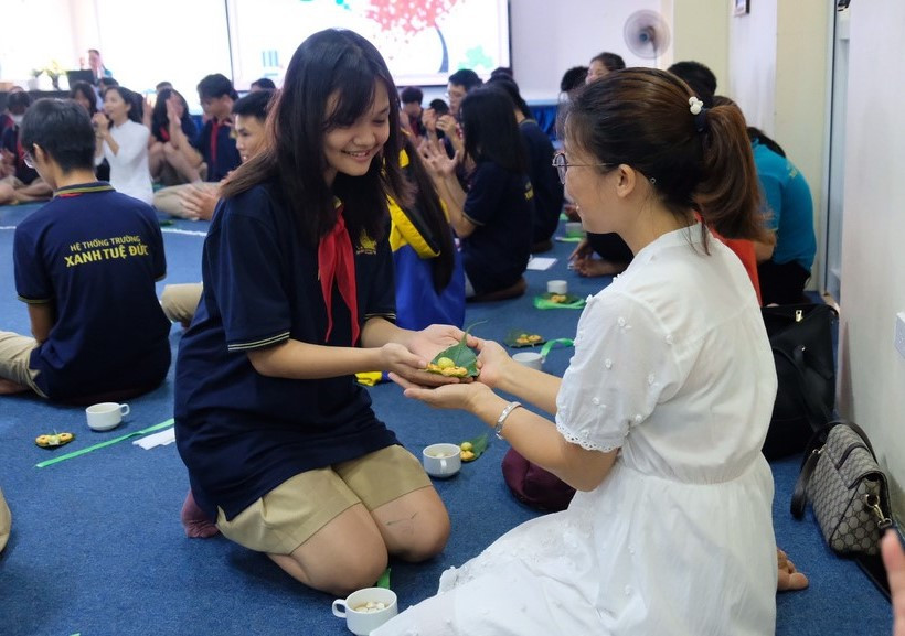 Trong lễ khai giảng năm học 2022-2023, Trường Tiểu học - THCS Xanh Tuệ Đức (Hà Nội) đã tổ chức những hoạt động như: Kết nối yêu thương: con và cha mẹ rửa chân cho nhau, Tiệc trà biết ơn, Tọa đàm biết ơn... Nhiều phụ huynh đã rơi nước mắt, xúc động khi được con thể hiện tình cảm hay lần đầu tiên được con rửa chân cho mình...