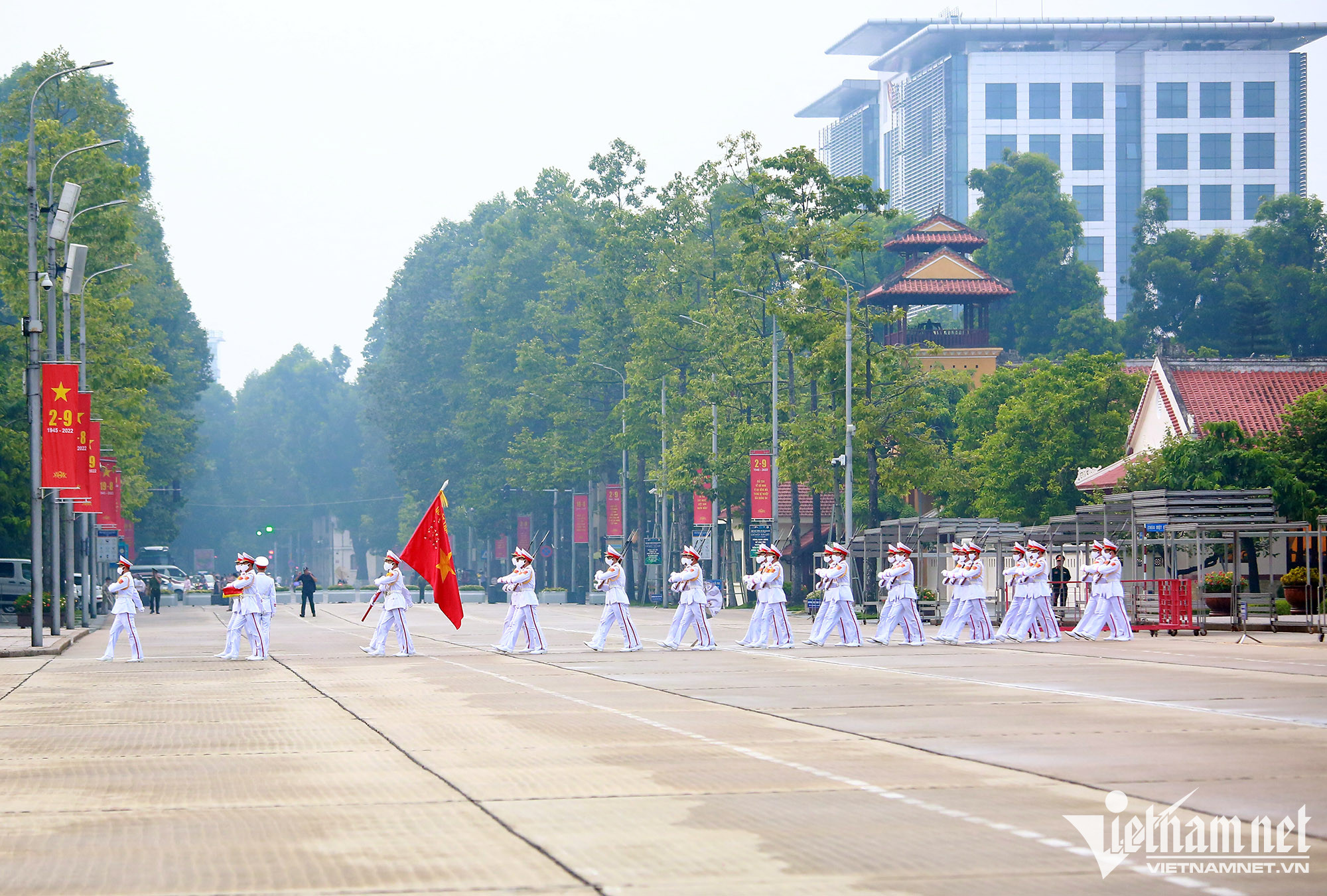 Sau lễ thượng cờ, đội tiêu binh diễu hành một vòng trước cửa Lăng Chủ tịch Hồ Chí Minh rồi trở về vị trí cũ. 21h hàng ngày, nghi lễ hạ cờ lại được đội tiêu binh thực hiện tương tự như vậy.