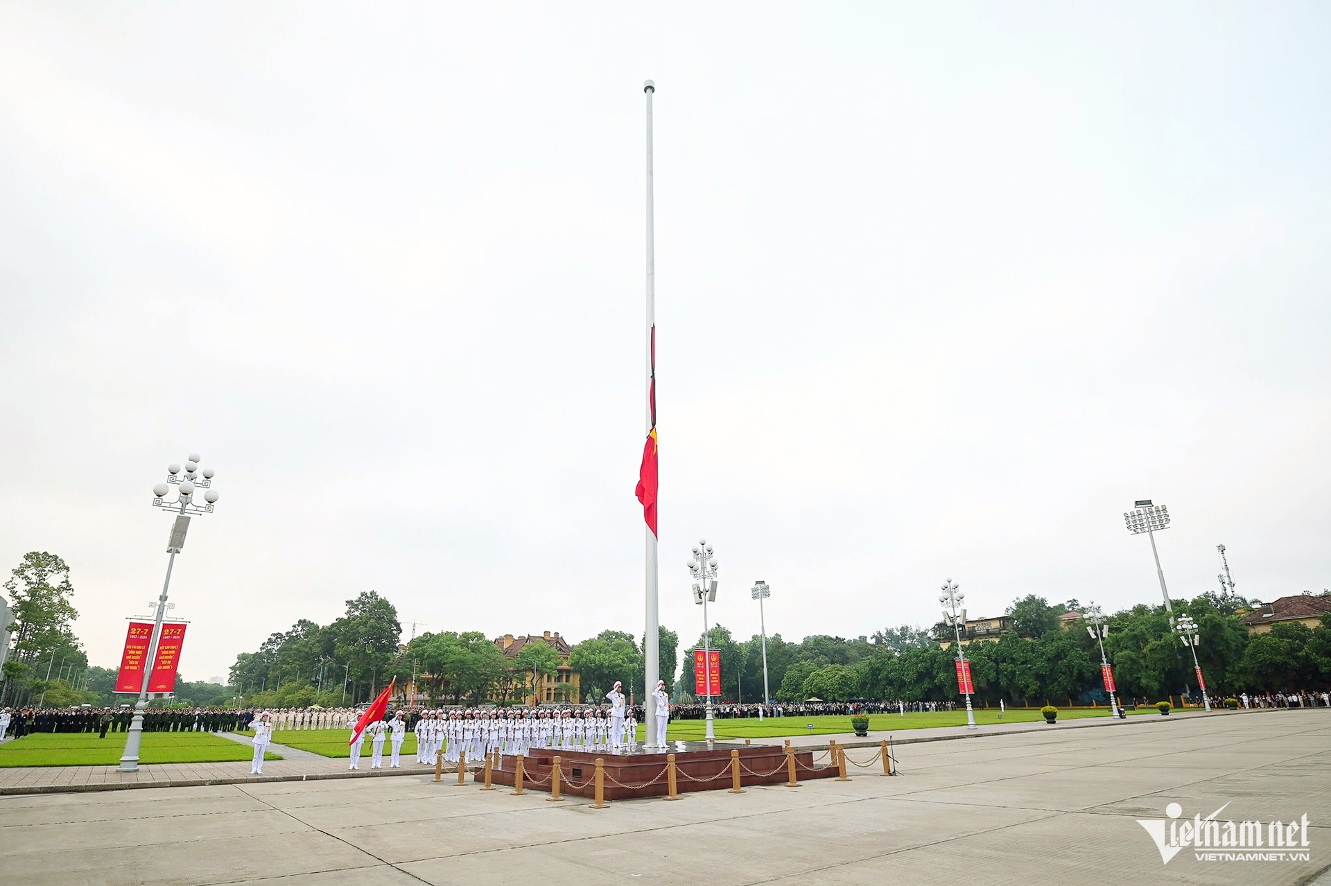6h ngày 25/7, Bộ tư lệnh Bảo vệ Lăng Chủ tịch Hồ Chí Minh đã thực hiện nghi lễ treo băng tang lên lá Quốc kỳ và thượng cờ rủ tại Quảng trường Ba Đình, bắt đầu Quốc tang Tổng Bí thư Nguyễn Phú Trọng trong 2 ngày 25 và 26-7.