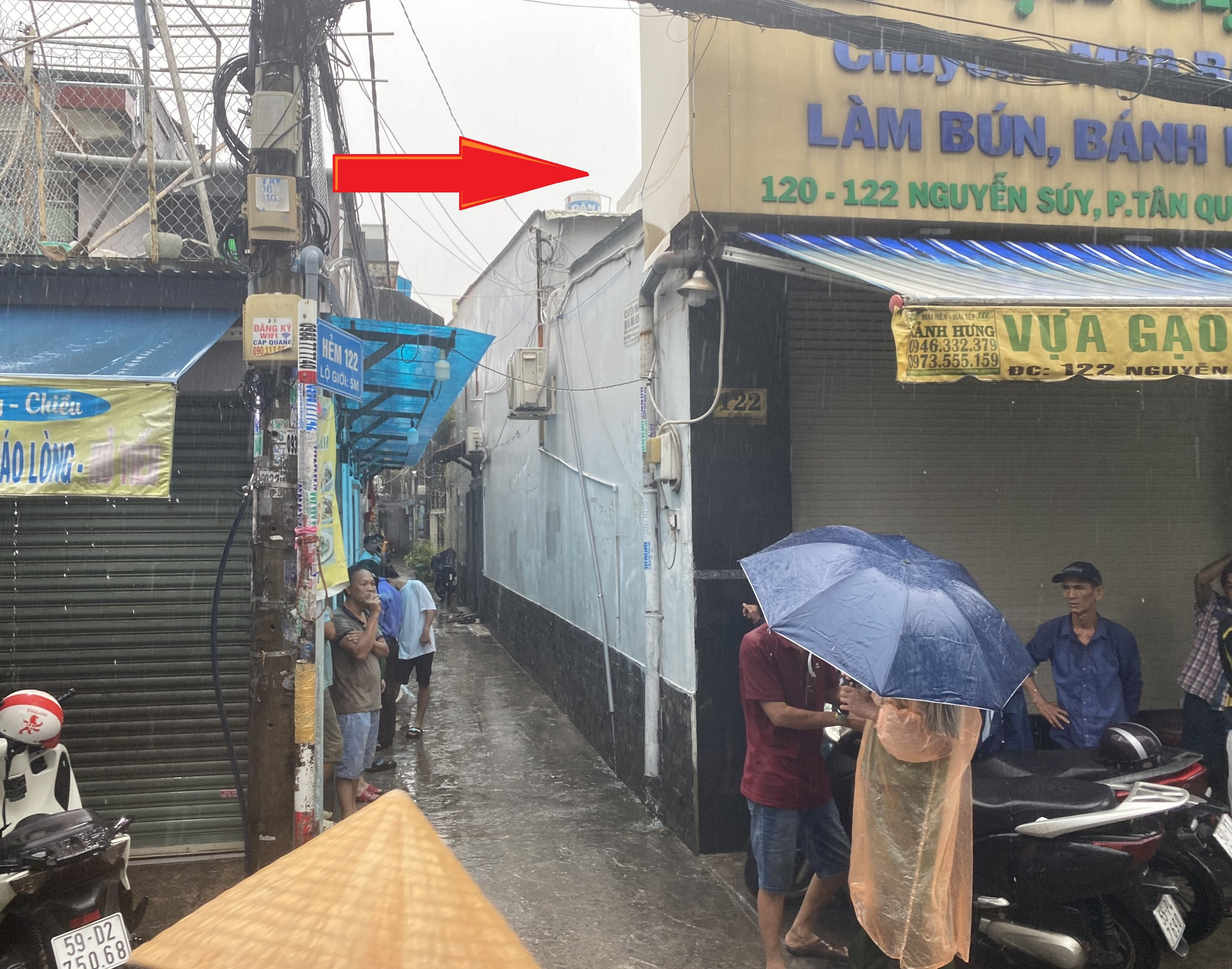 Hơn 11h30 trưa cùng ngày, tại quận Tân Phú (TP.HCM) có mưa lớn. Trong cơn mưa, ông H. leo lên mái nhà cấp 4 ở số 120-122 Nguyễn Súy, phường Tân Quý để vớt rác, thông dòng chảy.