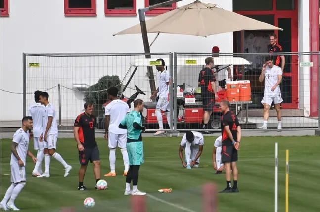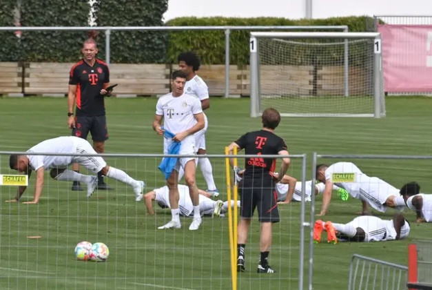 Và sau các bài tập thể lực, Bayern đấu tập cùng nhau nhưng Lewandowski chơi cho đội A, không ghi bàn nào. Đến phần đội thua phải chịu hình phạt là hít đất, tiền đạo 33 tuổi chẳng thèm làm, thay vào đó cầm đồ giải khát uống.