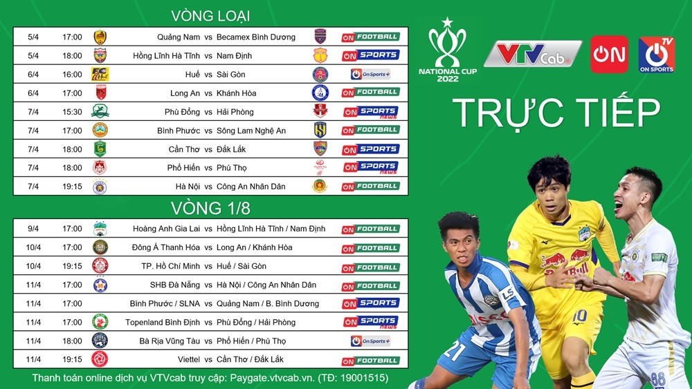 Lịch thi đấu bóng đá Cúp Quốc gia 2022: