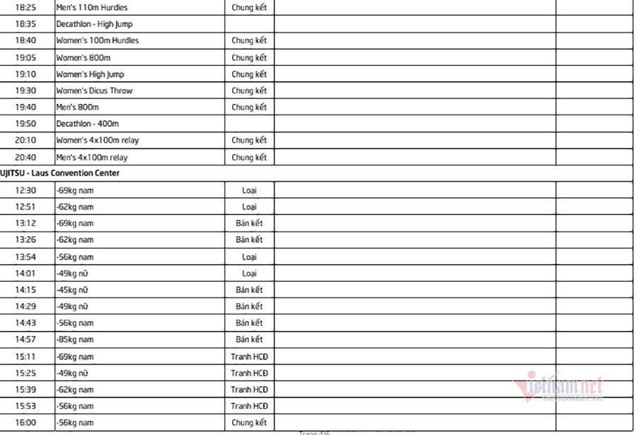 - VietNamNet xin gửi tới quý độc giả lịch thi đấu các môn thể thao ngày thi đấu chính thức thứ 9 của SEA Games 30 (9/12).