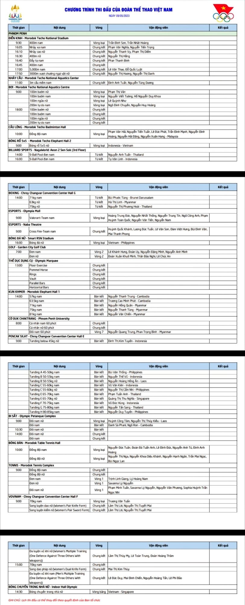Lịch thi đấu SEA Games 32 của đoàn Việt Nam hôm nay 9/5
