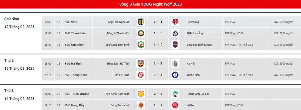 Lịch thi đấu V-League 2023 vòng 4Lịch thi đấu V-League 2023 - Cung cấp lịch thi đấu bóng đá vòng 4 Night Wolf V-League 1 2023 nhanh, đầy đủ và chính xác.