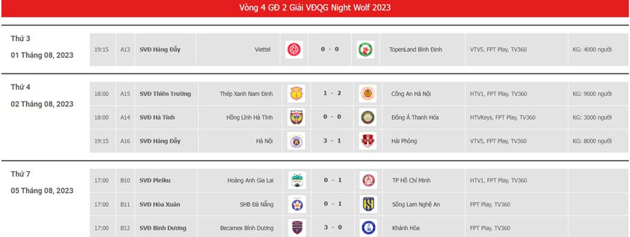 Lịch thi đấu vòng 5 giai đoạn 2 V-League 2023: Xác định đội xuống hạngLịch thi đấu V-League 2023 - Cung cấp lịch thi đấu bóng đá vòng 5 giai đoạn 2 Night Wolf V-League 1 2023 nhanh, đầy đủ và chính xác.