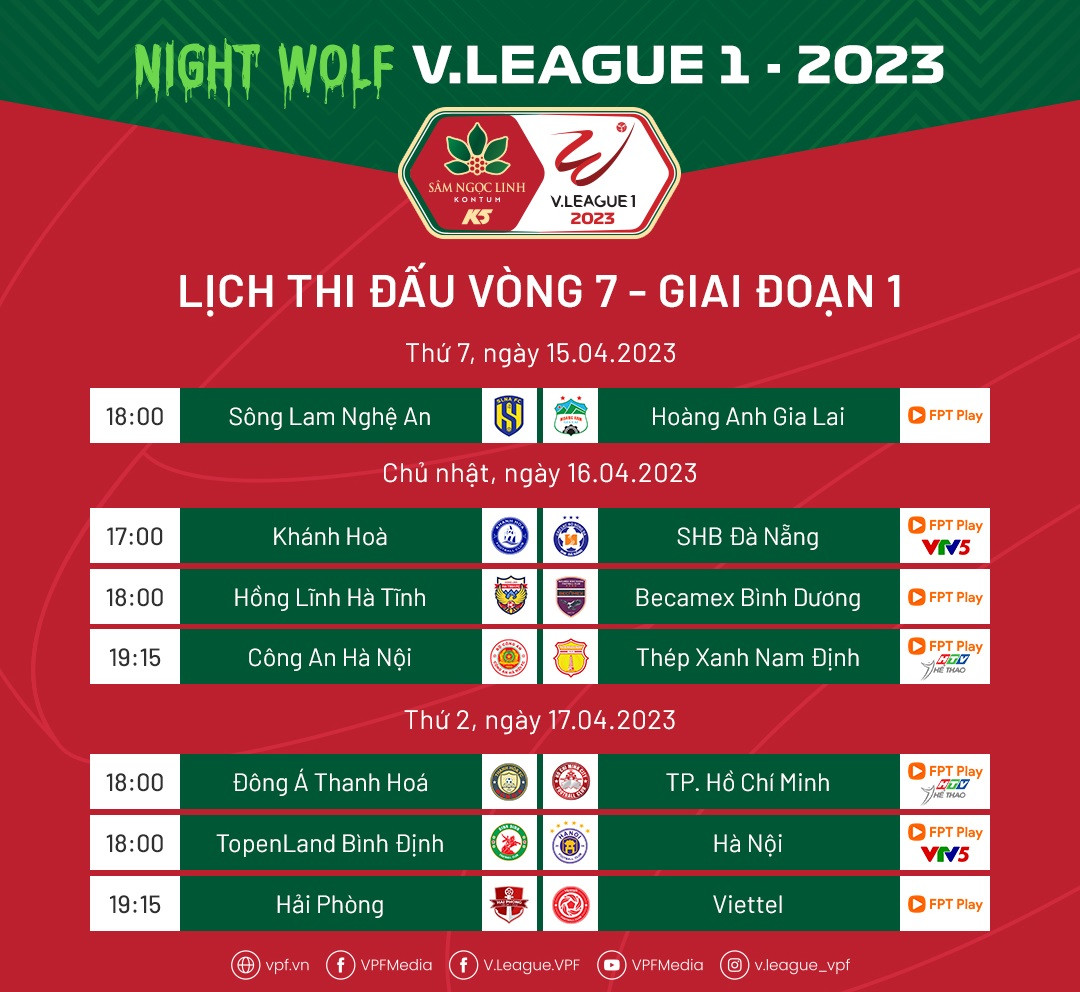 Lịch thi đấu và kết quả vòng7 V-League 2023