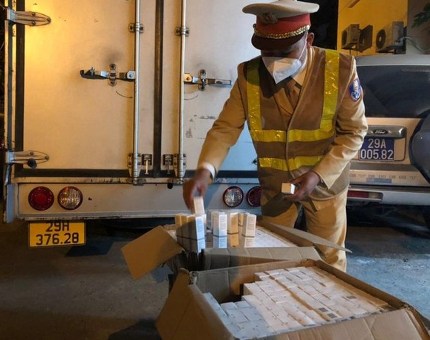 Trước đó, Đội Cảnh sát giao thông (CSGT) số 6, Phòng CSGT - Công an TP Hà Nội cũng đã phát hiện và thu giữ hơn 1.000 lọ mỹ phẩm nhập lậu.