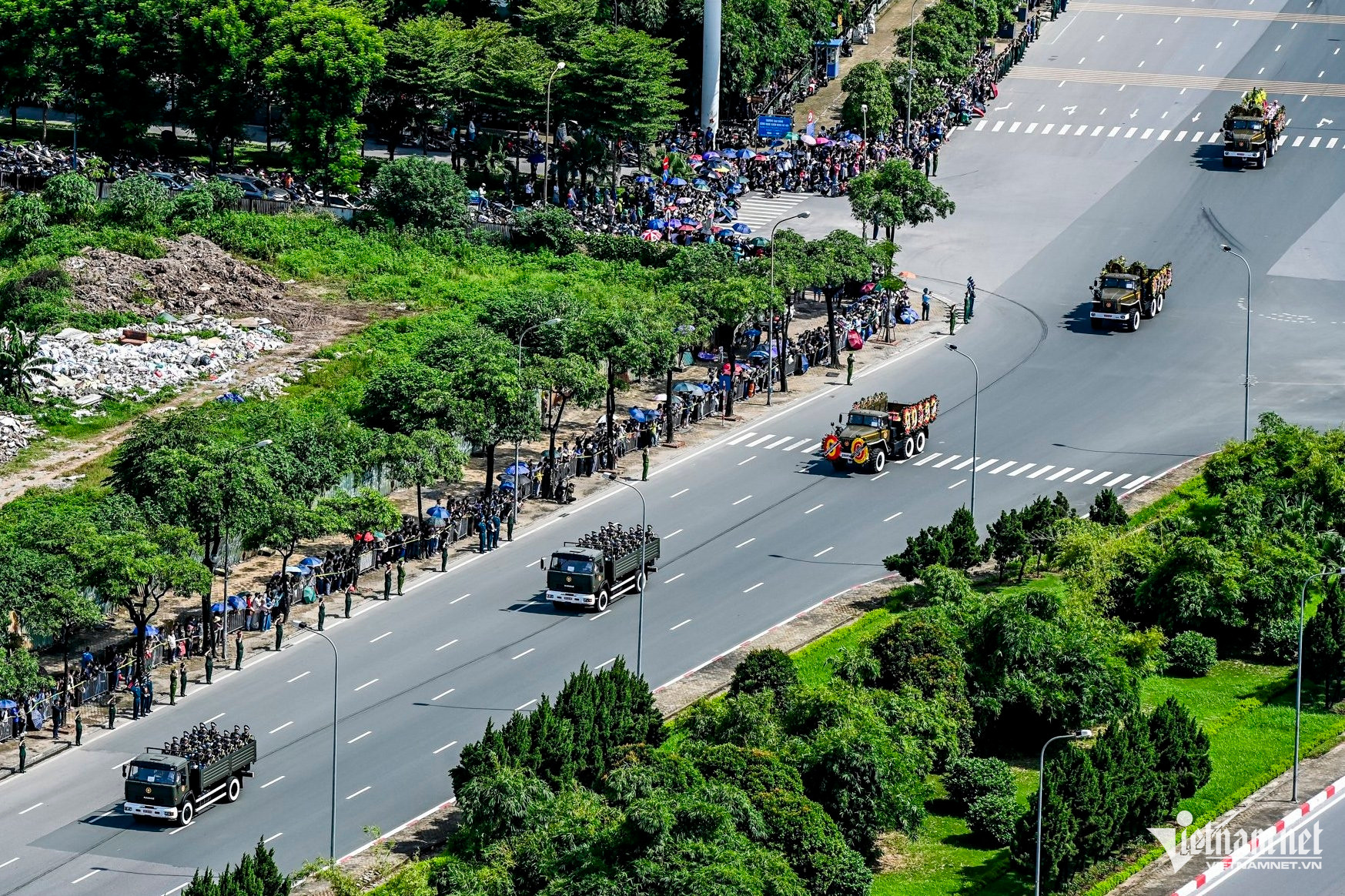 Linh xa đưa Tổng Bí thư Nguyễn Phú Trọng ngang qua quảng trường Mỹ Đình. Ảnh: Khánh Linh