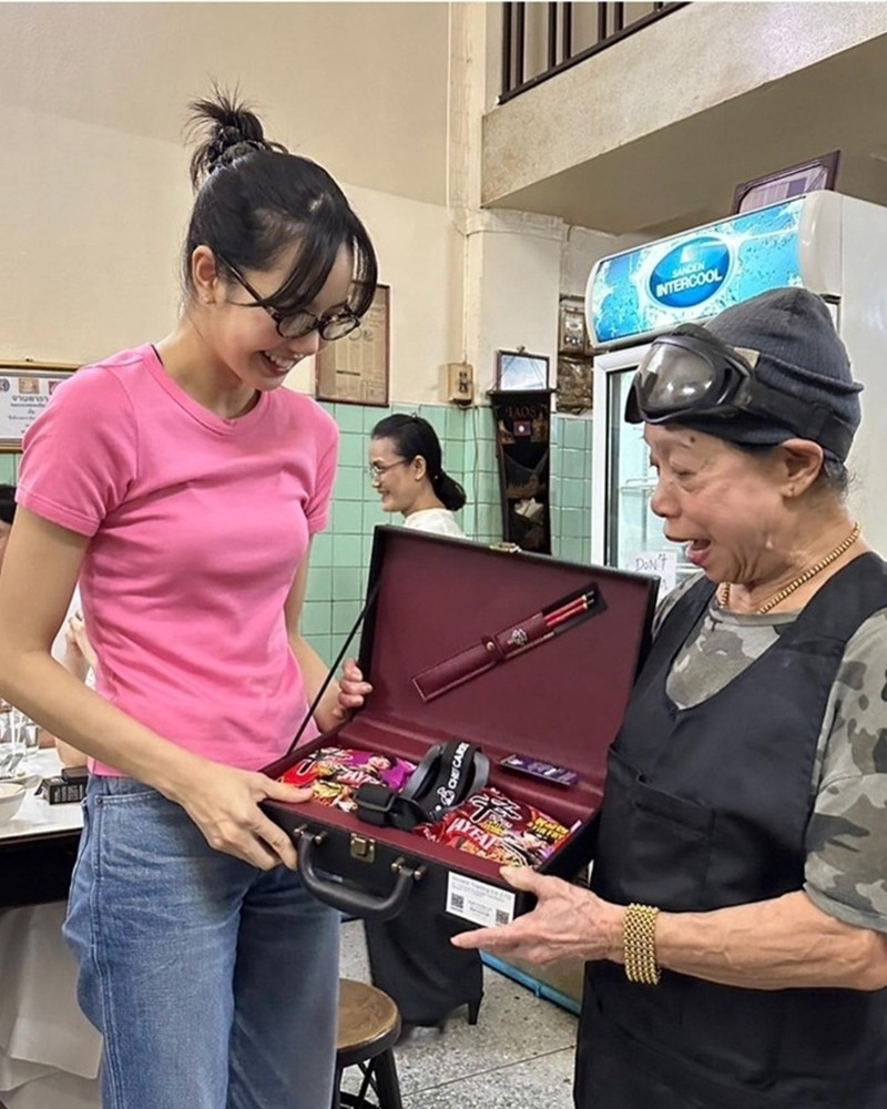Trong bữa ăn, Lisa vui vẻ trò chuyện chúc mừng chủ quán là bà Supinya Junsuta. Cô cũng chụp hình kỷ niệm để chúc mừng nhà hàng khi vừa nhận được sao Michelin lần thứ 7. Để cảm ơn Lisa, chủ nhà hàng đã tặng cô một hộp mì phiên bản đặc biệt mang hương vị Thái Lan.