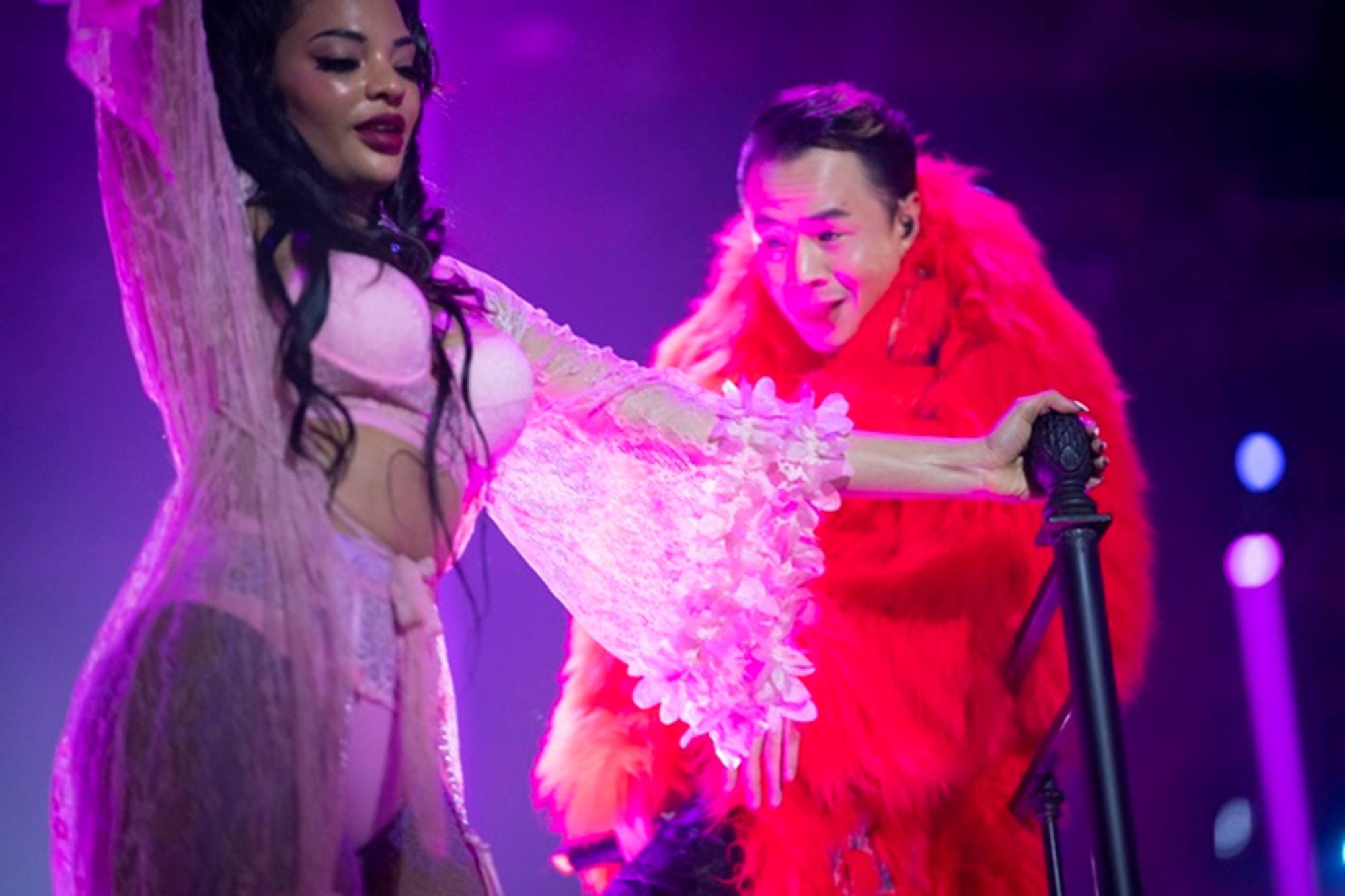 Cụ thể trong tiết mục They said, Binz xuất hiện trên một chiếc giường cùng người mẫu nữ. Rapper này có hành vi đổ bia lên vùng ngực vũ công. Ở các góc khán đài, một số vũ công thực hiện bài múa cột.