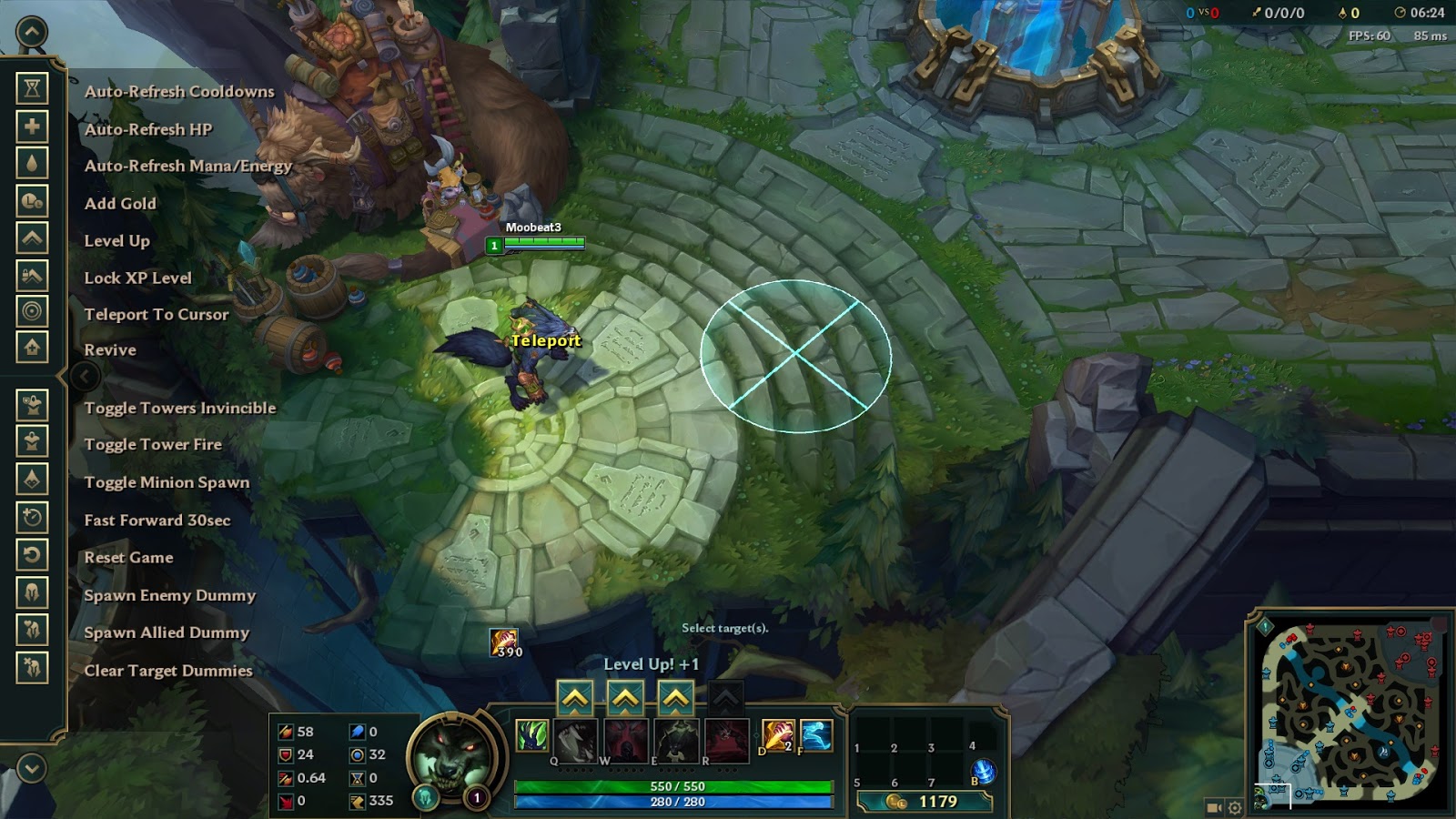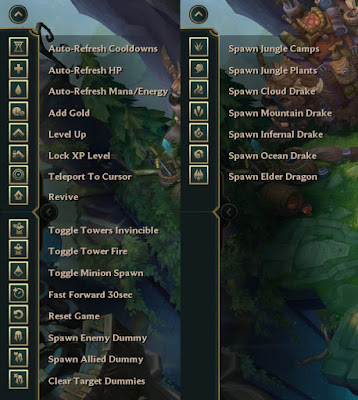 Theo bài viết, các lệnh xuất hiện trong chế độ Phòng Tập ở lần giới thiệu đầu tiên này bao gồm: Tự động hồi lại chiêu thức, máu và năng lượng; triệu hồi quái rừng và các loại Rồng; tạo ra các thể loại hình nộm và vô hiệu hóa trụ bảo vệ…