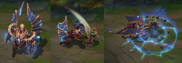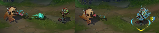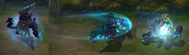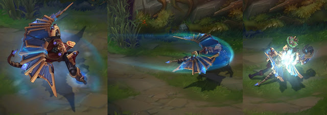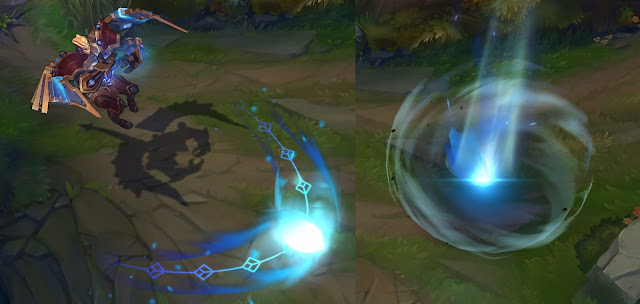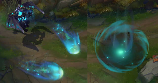 Trang phục Corki Giả Lập cũng đã nhận được nâng cấp hiệu ứng ở hai kỹ năng E và R – hình khối tên lửa cho cảm giác mảnh và dài hơn.