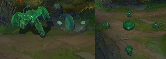 Kích hoạt lần đầu: Zac tan chảy thành một vũng lầy và vận sức, trở nên miễn nhiễm với hiệu ứng khống chế trong vòng 2.5 giây và làm chậm kẻ địch 30/40/50% đứng trên nó.