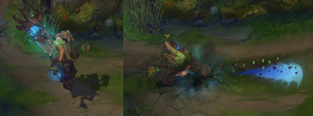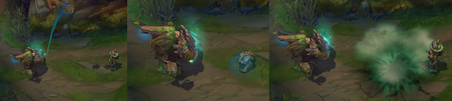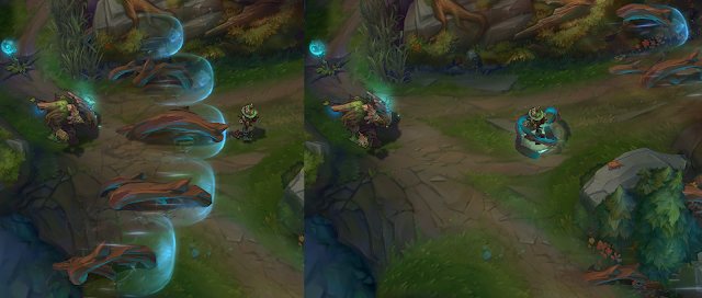 Maokai đang quay trở lại với gốc rễ của hắn ta trong vai trò một vật thể trong thiên nhiên bị ám bằng cách triệu hồi ra một bức tường rễ cây trói chân kẻ địch…