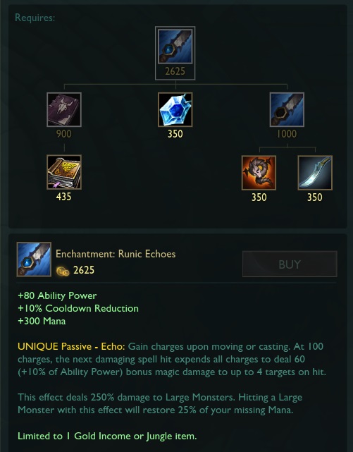 - Công thức mới: Sách Quỷ + Lam Ngọc + Trang bị Đi rừng + 375 Vàng.