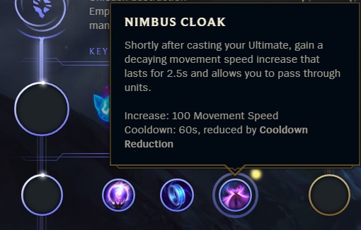 - Ngay khi kích hoạt chiêu cuối, nhận thêm tốc độ di chuyển giảm dần theo thời gian trong vòng 2.5 giây và cho phép bạn đi xuyên qua các đơn vị.