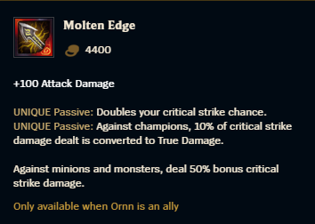 - (Hiệu ứng mới – tương tự như Vô Cực Kiếm) Gây thêm 50% sát thương chí mạng lên lính và quái rừng.