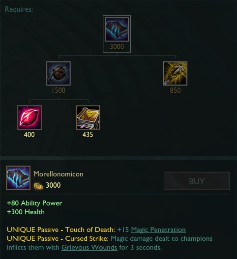 - (Hiệu ứng thay đổi) từ (Nội tại DUY NHẤT – Gây sát thương phép lên tướng địch còn dưới 35% máu kèm thêm hiệu ứng Vết Thương Sâu trong vòng 8 giây) thành (Nội tại DUY NHẤT – Cursed Strike: Sát thương phép gây lên tướng địch khiến chúng nhận thêm hiệu ứng Vết Thương Sâu trong vòng 3 giây).