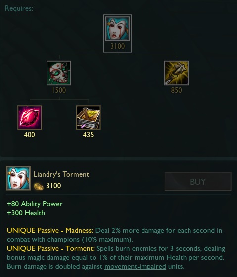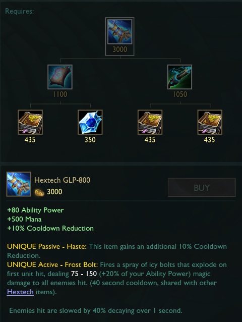 - Công thức mới: Bí Chương Thất Truyền + Súng Hextech + 850 Vàng.
