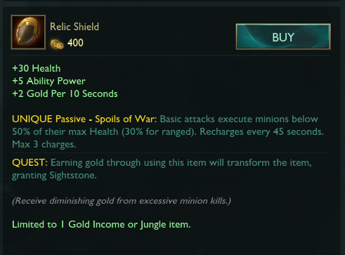 - Giới hạn 1 trang bị lợi tức Vàng hoặc 1 trang bị đi rừng.